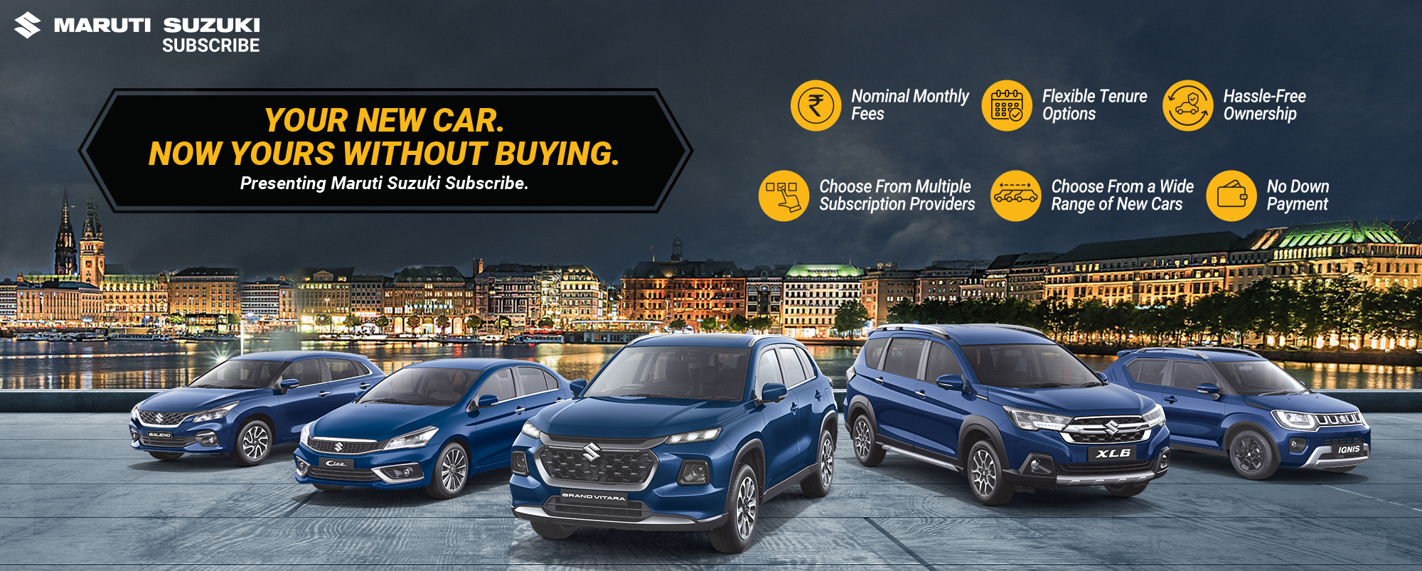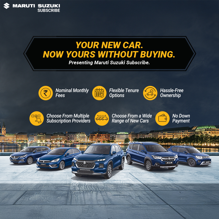 Maruti Suzuki Subscribe enables all customers to enjoy driving their preferred Maruti Suzuki cars without having to deal with all the financial responsibilities that come with owning a car.All you need to do is opt for a monthly subscription plan at a fixed monthly fee, which includes the routine maintenance and insurance costs, and choose a flexible tenure. At Shantesha Motors in, , Belgaum, all Hatchback, Sedan, SUV, the MUV models line-up includes Baleno, Invicto, EVitara, Jimny, Ciaz, Ignis, Fronx, Grand Vitara, XL6. Here, you will enjoy Maruti Suzuki Subscribe benefits such as: